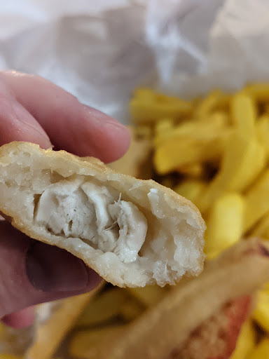 Made the decision to stray from our local on a fri night (in hindsight, should have chosen a quieter night). Customer service was friendly and was told 50 min wait time (also fine considering it was a fri night). What I wasnt expecting though was quite honestly the worst batter ever. It tasted old, rubbery, flavourless and very heavy/stodgy. The fish itself was lovely but completely ruined by this awful batter. Potato cakes also ruined by this horrible batter. I attempted to peel the batter off and just eat the centre but sadly realised that the potato centre was undercooked and was almost raw. Appreciate its was a fri night so very busy but definitely not returning. I should never have strayed from my local. ...