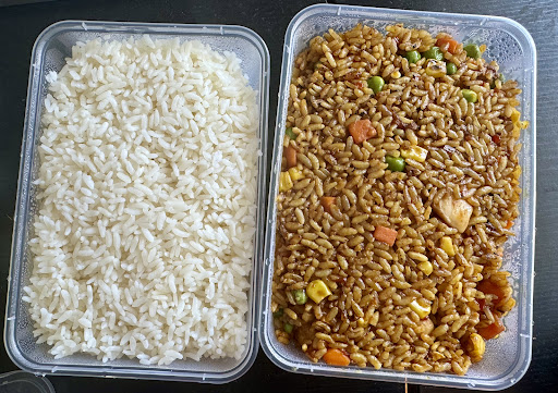 I’m so conflicted to review these. They are very generous servings. All of these are large plastic containers. They look good. And with the price, i almost couldn’t see anything wrong… but, they are so tasteless. We bought these during lunch. Considering they just opened, the plain rice is old and hard to eat. The nasi goreng is atypical. It has the three veg combo - peas, carrots and corn. No shrimps, no beansprouts or any asian veggies. The singaporean noodles are mushy. It has pork which we found flavourful, but it came in a big blob of pork that would’ve been nice if it was cut into strips. Its the size of a porkchop but thinner in slice. The noodles on the otherhand doesnt taste like anything. No curry flavour, despite its colour. Nothing. The beef hor fun is the same. No flavour or any spice. The colours in the picture dont do justice how flavourless, tasteless or bland they all are. In the end, we had to put salt and soysauce in all of them just to get some flavour of what we’re eating. This is one of the most disappointing meals we’ve ordered. We might give them another shot in the future to see if we just got unlucky, but hope...