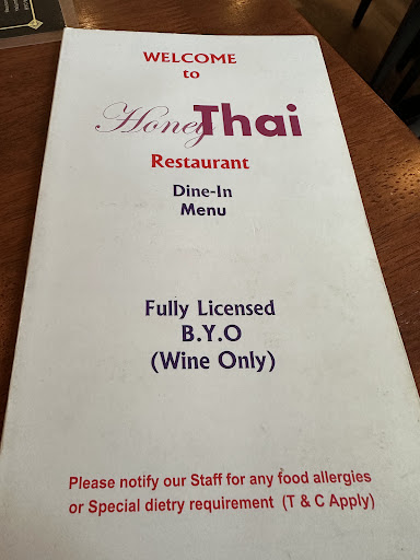 A couple of girlfriends and I met outside Honey Thai hoping to get a table without a booking. We were warmly welcomed and the staff were just wonderful with their hospitality, patience and attentiveness. Between us we ordered a seafood stir-fry, vegie and tofu stir-fry, green curry with veggies and tofu plus jasmine and coconut rice to share. The beverage menu is quite extensive so we enjoyed a variety of wines by the glass 🍷 Our meals arrived hot, fresh and beautifully presented on lovely dishes with great service from our wait staff.... ate more than I needed to but everything was so delicious! So glad we were able to enjoy a perfect girls night dinner at Honey Thai - we will definitely be...