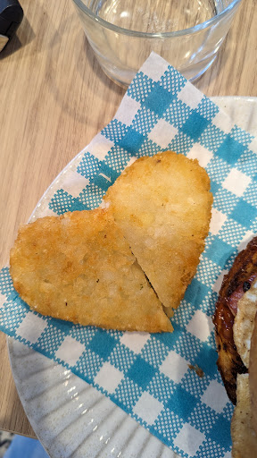 We have frequented Hoppa and Joe fairly often for 4 years now, across many changes of ownership and fresh coats of paint. The new look is bright and fresh, and makes a really nice atmosphere for a brekky date. The little touches - like this love heart hashbrown - are subtle but make it seem like we are really being taken care of. The only downfall on our recent trip was that it seems the gluten free bread supplier has changed. My husband is a coeliac, and we both thought the GF bread at Hoppa and Joe's was the best available in a cafe by far. Our recent order had a different bread that unfortunately tasted like the bland, solid cardboard we're used to elsewhere. We know that good GF bread can be expensive, but please consider another supplier, or at least toast the bread longer with a bit of butter to try and make it edible for those that don't...