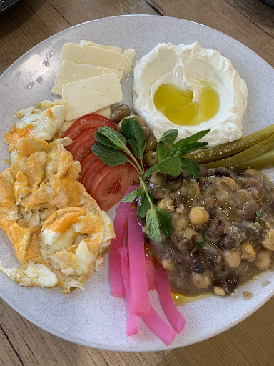 It was my first time trying Lebanese food, and I decided to go for their big Lebanese breakfast. To say it was impressive would be an understatement - the portion size was huge and could easily satisfy two people. The dish came with a large pot of tea and two flatbreads, offering a wide variety of flavors and ingredients. I particularly enjoyed the fool, which was absolutely delicious.