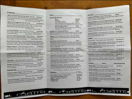 We were initially attended to by a young waiter who was friendly and welcoming. Shortly afterward, though, a middle-aged waiter took overāand thatās when the experience began to decline. He even shrugged off a female waiter who had just brought us drinks and was kindly explaining the pasta options.