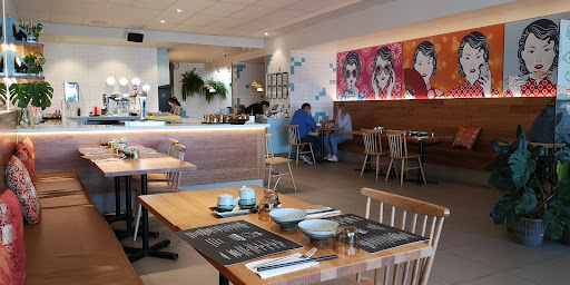First of all, the service is dreadful. Polite, to be sure, but the staff give all the appearance of people who have never spent a single day working in the restaurant industry. I watched customers give up and walk out the door due to the slow service. The poor woman sitting opposite us waited almost half an hour just to place her order, and then only because the table next to her realized she'd been forgotten and called the staff over on her behalf. When I paid my bill at the counter the woman rang up the bill then excused herself to go serve two other tables before coming back to accept my payment. These are basic, rookie mistakes that even food vans don't make.