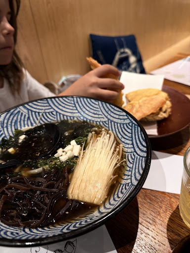 Service & Atmosphere • Fast Service – The staff was attentive, friendly, and efficient. There were enough waiters, and food arrived quickly. • Great Customer Care – They even accommodated a special request from our child for drawing paper, which was a thoughtful touch. • Interior & Cleanliness – The design is minimalist, close to traditional Japanese simplicity, similar to Ramen Café. However, dust was visible on decorative wooden wall elements. • Storage Display – There was a glass display fridge outside the café, meant to showcase food, but it looked mostly empty, with only a couple of sushi pieces inside, which didn’t make it inviting. • Open Storage – Supplies like napkins, plastic bags, and bottles were stored in a visible cabinet, which made the space feel less polished. • Kitchen Smoke – If sitting inside, the air can feel slightly smoky from the kitchen, which may be uncomfortable for sensitive guests.