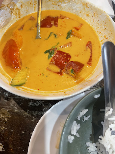 The red duck curry? Sauce was as runny as water, with barely any flavor, and I only got three tiny slices of duck. Was this a main or an appetizer? The beef massaman? Tasted okay, but it came with just three cubes of beef surrounded by a small farm of potatoes and carrots. The pad see ew? It was⊠fine. Nothing specialâdidnât see fireworks or angels, just noodles. The mango sticky rice looks good in the photo but lacks the coconut flavour and dry.