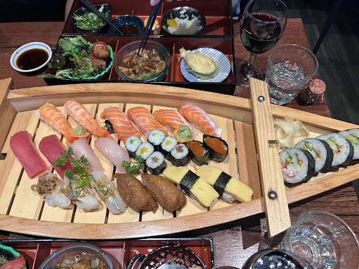 We ordered a sushi boat for entree that came out after our mains. Our mains were bento boxes and ramen. The ramen was outstanding, the broth was rich and creamy but was missing a traditional boiled egg. The bento boxes were generous, fresh and filling. By the time the entree arrived we were all too full to eat the beautifully made sushi.
