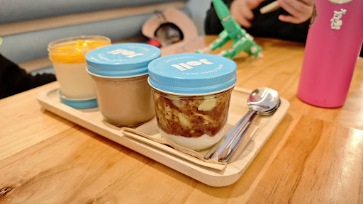 There are many flavors, and my favorite is the ☕️Coffee Trio. It’s not bitter at all and even quite addictive. Pairing it with cocoa pops takes it to another level. Other flavors include: Mango 🥭: fresh mango + coconut jelly UBE: purple yam + coconut jelly Nunana: Nutella + banana slices + coconut jelly (I want to try this next time) Kyoto: red bean mochi matcha coconut jelly Biscoats: oatmeal maple syrup coconut jelly For toppings, I chose popping boba, fresh fruits, and cocoa pops. The combination of rich textures with fresh fruits makes the flavors even better.