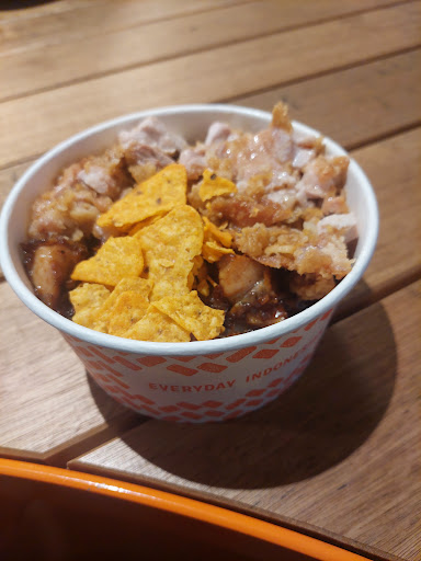 Wait is a bit long but worth it. Geprek chicken, fried, spiced, smashed and added to the top of the crazy rice. This didn't disappoint, everything you expect in crunchy spicy chicken, I loved it. Then there's the tender sweet soy braised beef atop the fried rice. It is a little rich but really tasty and along with the fried rice goes down a treat. Some corn chips for crunch. Enjoyable lunchtime meal.