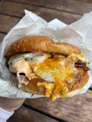 I had the Brekkie Burger - fried egg, bacon (or mushroom), hashbrown, pickles, BBQ sauce and cheese. Come before 10am and theyāll add a free coffee! It was a great size, freshly made, the bun was soft, the hash brown and bacon were both really crispy and had a good crunch to them, the egg was nicely fried. The only criticism Iād make is that there wasnāt enough sauce (Iām a sauce fiend) and it was a little oily but I guess thatās expected given the ingredients.