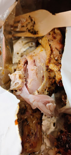 Food 0.5/5 *Ordered the 1/2 Chicken. When I opened it, the chicken was borderline white/tinges of pink when inspected at certain angles. It's the white colour you get right after the pink turns white, its a certain texture only chef/hospitality professionals can tell. *Opening out the breast as mentioned above, proved that texture to be throughout. *Looking at the drumstick, I could confirm this was that same, but the drumstick didn't make it past the cooking point. It was pink and uncooked. That's all there is to it. (I am an accredited chef and operate successful businesses in Hospitality) *Manager tried to argue that it is a thigh and it should be pink. Yes, pink when uncooked in raw state, but not in the texture in the photos. That was only in the surface of the drumstick too, didn't even go deep. I didn't bother with a debate. Perhaps invest in more secure proof methods to ensure your chicken is not undercooked rather than trying to educate thighs are pink are edible. See photos. Enough probdbly said. *Garlic dip is the only item I could get my mouth onto. It had that home made, whipped texture. Dip itself was up there maybe 4/5, but on the grand scale of things, this is not a food item. To be fair, it would be 0.5/5.