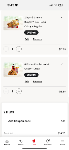 I was both not happy with my experience with the food but also from KFC being one of my most like fast food meals to have when I get takeaway it has now become to being one of the least just from that experience. And because of that it has made me not want to eat KFC anytime soon. I am truly not happy with this experience and this could have ended a lot worse for me and others who ordered food from that KFC that night. You guys need to do better to avoid people from getting sick from the food. Just...