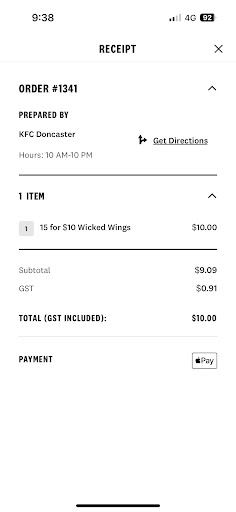Ā Ā Ā Read moreOrdered via app at :515 pm and drove to the Doncaster East kfc store by 5:30 pm. Collected order at 5:45 pm and said "thank you" to a blonde chubby girl that made my order. She was silent didn't say anything. Got home and my surprise 10 wicked wings were missing. Returned to store at 6:15 pm and informed Blonde chubby girl she forgot the 10 wicked wings, showing her my order on my mobile via the app. She did'nt even look at my mobile and didn't even say anything not even an apology. Blonde girl grabs a small box and stuffs wicked wings in it dropping one on the floor. I walked to my car thinking I should check the number of wicked wings. There were 7 wicked wings when it should have been 10. I returned to the store a second time to inform the blonde chubby girl she gave me 7 instead of 10 wicked wings. There was NO APOLOGY and again the Blonde chubby girl said nothing, she had a "ZERO CARE ATTITUDE". An Indian girl apologized and told me of a 10 minute wait on the wicked wings. The blonde clubby girl then dropped a full tray of popcorn chicken, her incompetence just gets better. A boy sweeps up after the blonde chubby girl's incompetent mess. Another customer checks his order and says "Hey where is my wicked wings?" incompetence goes to a whole new level. He is also told there is a 10 minute delay. By this time the Indian girl gave me my wicked wings, which I counted 3 times before leaving the store at 6:45 pm. ONE HOUR AND THIRTY MINUTES. I WILL NEVER...