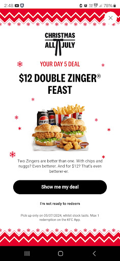I do not recommend ordering delivery via the KFC app as you have limited recourse if the subcontracted service don’t deliver. We paid $72 direct to KFC Yarraville for a family meal that was stolen by the subcontracted DoorDash driver. DoorDash couldn’t refund us as the payment was to the store and the store denied any responsibility despite accepting the payment and subcontracting the delivery to DoorDash. DoorDash were kind enough to lodge a claim for a full refund from KFC Yarraville online on our behalf, but the store themselves would neither remake our order or provide a refund when we explained the situation and requested either over the phone.. We have been KFC Yarraville customers since the store opened and, until today, have always picked up our orders ourselves, but we won’t buy from that franchise again in future. I suggest that if you are going to order a delivery that you use the delivery services app instead (eg order via DoorDash/Menulog/UberEats direct). The refund process for undelivered orders is much more straightforward and you don’t have the company that accepted your order and took your payment telling you they are not responsible if you don’t get your delivery from a service they...