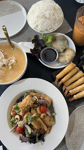 For mains, I had Tom Kha Chicken. I requested it without vegetables, and the staff were kind enough to make it that way for me. The soup was so smooth and beautifully rich with coconut flavor. I also tried the Barramundi with Thai herb salad, which I saw was a new dish on their menu. I ordered it mild and it turned out just perfect. Definitely a must for fish lovers. And I had Thai Milk Tea on the side, which paired so well with everything.