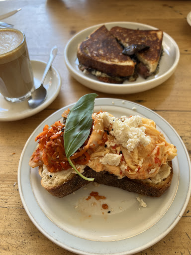 I returned today, ordered an oat coffee—pointing to a porcelain cup—and a kimchi toastie (with an extra crispy egg as I’m not a fan of runny yolk).
