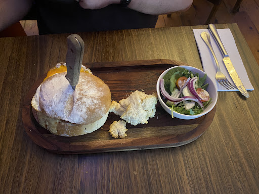 Read moreThis place definitely has potential and my Husband and I both enjoyed our experience.Customer service is very good and the waiters were attentive and happy to help. The restaurant itself looks great very nice to see that a lot of the architecture has stayed how it is. The pictures, paintings and fire place was a nice touch. What I would suggest would be to remove the fairy lights as it takes away from the atmosphere) and add some renaissance music ( there would be a Spotify playlist I am sure) at least for the dinner service which I feel will make the whole experience that much better. I was very impressed to see mead on the menu which was a staple back in the day, it was fantastic but I would recommend rather than having it in spirit place it with the beers and ciders so it is a bit more recognisable. The food I feel was good but did need a bit of work. I am aware times are tough so I can understand a few things however here are a few considerations.We ordered the cob bread to start. The presentation was awesome (gave both my husband and I a laugh) The bread and dukkah was fantastic however the whipped butter was a sachet you would get at a continental breakfast which was a bit of a shame ( even putting it in a seperate dish would be great). My husband got the stew in a bread bowl which was once again presented very well. The flavours were fantastic however definitely needed a bit more sauce as the bread soaked up quite a bit so ended up being quite dry . The meat was tender however so it made up for some of the dryness.I got the roast of the day which was pork. The presentation was lacking here unfortunately but the vegetables were amazing, in particular the pumpkin and carrots were cooked perfectly.They did skim on the meat a bit however I put that down to the recession and the Yorkshire pudding was a bit eggy for my liking and slightly overcooked . Once again really needed a bit more sauce in particular gravy and perhaps an option when ordering if we wanted apple sauce ( not a biggy for me but realised that this may cause issues for others). Overall a solid meal but does need work in a few areas. I hope these recommendations do not come off as rude and I hope they do take these into...