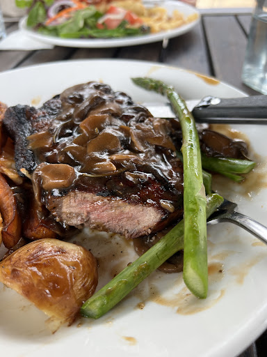 The location is amazing, the view is spectacular but let's be honest, you don't eat the view. Looking at the menu, the selection is very mouth watering. A long list of great options and when you look at the price you expect to get excellence for what you pay for. The prices are what you would expect in a high class restaurant. The service is friendly and everyone greets you with a smile which makes the experience very pleasant. What I didn't understand is that you're paying a premium to eat the food but yet need to order it as though you're in a bistro or a pub. There's no table service. I ordered a garlic pizza to start followed by the 500g rump cooked medium with a red wine jus, salad and chips. Garlic pizza arrived, not off to the best start. Very salty and just wasnt pleasant to eat. Rump arrived and it just got worse. Arrived cremated, in other words, over cooked..... wayyyy over cooked. For what I paid you'd expect the chef to know how to cook a steak. Medium means you get a nice pink middle with juices flowing through the meat making it succulent and juicy to eat. What I got was char grilled cardboard. Very dry and way over done, the "red wine jus" was straight out gravy. Had no flavour what so ever. Turn away from the meat to have some salad..... disapointed. Got dry salad with a drizzle of dressing as though they didn't have any dressing left leaving me with a very dry and old salad instead of fresh. Turn to the chips..... even worse how can you cook chips wrong? How about cooking them a little longer and make them golden and crispy instead of chunky flavorless chips. At least add salt to the chips as a bare minimum. Minimise the salt on the garlic pizza and add it to the chips. Cook the chips a little longer and the steak less. It's a shame because the meat itself is local and so the quality is exceptional but these guys don't treat it with respect by cooking it properly. Our trip to mornington, Authurs Seat and Dromana was spoilt by the quality of food being dished out and still recon they can get away with charging such ridiculous rates. Arthur's Hotel... rubbish, L'aqua.... rubbish. In the end just grab yourself a chook from IGA or Coles, you'll...