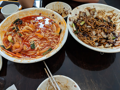 This place is known for their jajangmyeon, you can order the spicy 2 person portion (which in reality feeds 6 small stomachs) without the spice(don't ask me why it isn't reflected in the menu).