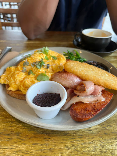 Read moreAnother new Cafe to try and bit disappointed in this one. The avocado smash didn't automatically came with eggs this time but ... bacon. What! So asked if I could have and swap bacon for spinach and they couldn't do this. So had to order toast with a side of avocado and actually got side of houlami. Anyway very insipid looking and tasted just OK. While my friend had side of avocado, side of mushroom and one piece of toast. Also bizarrely on menu says if you just order sides then you have to pay $2 extra for a .. plate. Yes you could order, tomato, mushrooms, spinach, houlami, avocado, hash brown and whatever else and pay an extra $2 to plate it! I have never ever seen this before and I have been to many many cafes. Bizarre and don't understand it. We also had coffees (soy lattes and lattes). Place has lots of seating inside and out but, internally even though they have made place look nice with wooden chairs and tables and greenery, it was quite cold and the tile floor was very slippery. I don't think I would go back. Also felt like toastie but not on menu whereas when went to pay had a whole list of toasties they make on counter. Perhaps they could put these on menu? Also bizarrely they close at 3, yet literally about 30 metres away is a High School, wouldn't you stay open to get the after school kids with their toasties, smoothies, milkshakes and whatever else high schoolers eat and...