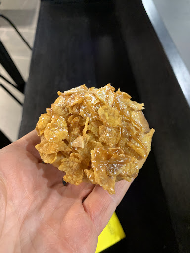 Update: I’m a sucker for cereal. Literally grew up on the stuff. Breakfast, after school, dessert. Had my doubts about straying from the original Hokkaido cheese tart - which is very very good, especially if you can catch it freshly made. The dripping, warm, oozing cheesy sweet goo… sigh. But at Southern Cross Station, just before closing, no such luck. Nothing is fresh at 6pm. And here’s where the oddly named ‘salted caramel’ tart came into its own, because cornflakes are still good stale and chewy. Work with me here. Though maybe you shouldn’t because I’m also a soggy cereal fan, but I digress. This breakfast cereal-clad salted caramel tart was sweet, yes, so sweet, and delicious! Yum! Loved the textures, loved the ooze, loved the surprise of the caramel half/half filling. $4.50