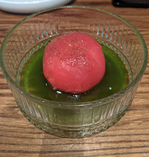 Stracciatella, anchovy, pickled green tomato, peppers & garlic toast - a must try, build your own bruschetta. Creamy mild and delicious with the right amount of salt. We were a little disappointed with the absence of the compressed tomato but nonetheless, further reason to return. Yay for us!! Lol!!