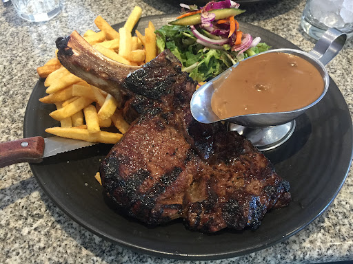 First of all, the food was absolutely beautiful!! My first visit I tried the 300 gram rib eye steak, med rare with mushroom sauce, chips and salad. I was truly blown away. The steak was cooked to perfection and the mushroom sauce so good, I wanted a jug of it to take home myself.
