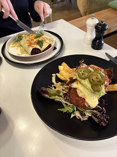 I've eaten there several times besides the routine coffee and muffin breakky and the meals are tops. The service is great and it's such a refreshing departure from a lot of cafe fare. The outside has large fixed concrete tables (for small or medium groups) and two tops and when the sun is out in the late afternoon it's gorgeous and lively and there's a happy hour and super selection of small tapas, etc. The burrito bowl with pulled jerk pork or jerk pork tacos are amazeballs. The toasties are too, and the sticky date slice is epic and different.