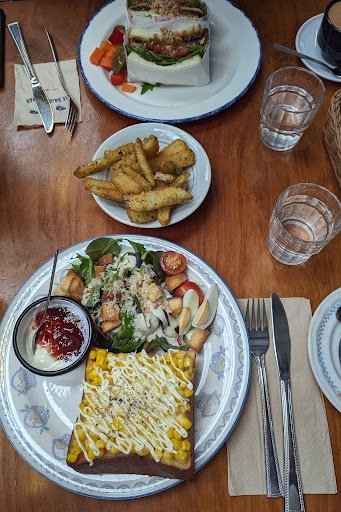 Breads and sandos are the stars here. The pork katsu sando arrives in thick milk bread that soaks up the tonkatsu sauce without turning soggy, while the egg salad version is laced with just enough Kewpie to stay creamy but not heavy. Curry pan lands hot and crisp, filled with gently spiced beef that calls for a quick sip of the house iced matcha. On the sweeter side the melon pan has a delicate crust that cracks perfectly when you bite, and the seasonal fruit sando stacks whipped cream and strawberries with the precision of a patisserie window. Coffee is roasted in house and poured strong; staff will happily swap dairy for oat or soy without fuss.