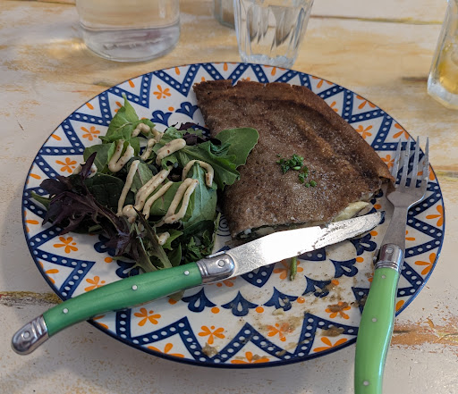 My opening long black was lovely. I’ve rarely ever had a good coffee in France but thankfully this cafe hasn’t followed that lead. The brew was mighty tidy. I went with one of those build your own brekkies for my meal. Two poached eggs on toast with mushrooms, emmental cheese, baby spinach and smoked salmon. I chose wisely. The dish was all quality and really tasty. The cheese was amazing, the mushies excellent, the spinach was sautéed superbly and the salmon was absolutely drop dead gorgeous. The service size was also bang on perfect too. My partner had a crepe that she pronounced excellent. Our friend had quiche with salmon, goat’s cheese and spinach. I tried a bit. The quiche was a cracker. It was really tasty with flavour all there and the crust was light, tasty and not too heavy. A winning dish.