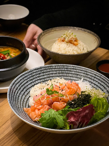 Read more🇰🇷 hearty korean meals 🥘 mama’s soy bean stew 🍚 fish roe on stone rice 🍣 sashimi salad bowl 🧇 injeolmi croffle