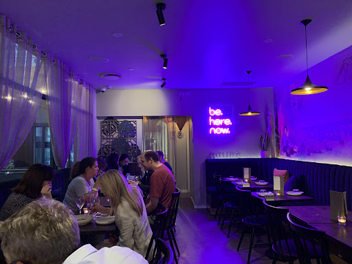 On arrival we were pleasantly surprised to see our table with baby seat all set up. The fit out is very intimate and luxurious. A neon sign invites diner to âbe here nowâ. Wise words indeed.