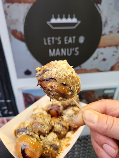 A dessert truck that actually delivers on hype! Let’s Eat @ Manu’s is a flavor explosion wrapped in warmth and street side charm. Tried the OG Waffle loaded with Nutella, banana, strawberries and ice cream. It was dreamy, decadent and worth every bite. The Oreo Magic Waffle hit that perfect crunch. And don’t get me started on the Hot Gulab Jamun, fresh, syrupy and absolute comfort in a bowl. The star? Manu’s Loukoumades — white chocolate, cardamom, pistachio like Athens met India and decided to become dessert soulmates. Kulfi Falooda was creamy and nostalgic, while the Loaded Churros felt like a guilty pleasure served unapologetically. Every item had texture, balance and something memorable. The service at Manu’s was efficient. Highly recommend this spot for anyone chasing indulgence with a side of cultural flair. Whether you are a dessert nerd or just here for the vibes, this truck...