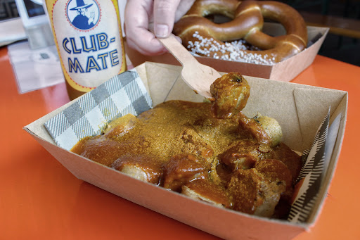 We continued with the CURRYWURST - if you love curry, you need to try this. It is a deliciously cooked before your very eyes Bratwurst sausage in a Berlin style curry-tomato sauce. Yum.