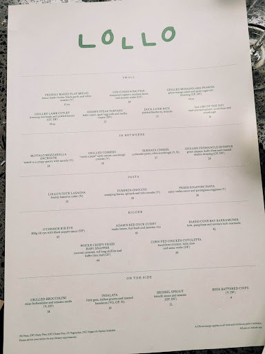 🥬 Grilled Cosberg: "cacio e pepe" style caesar, sourdough crumbs ($18.00) 🌭 Lollo's Duck Lasagna: freshly baked to order (52.00)