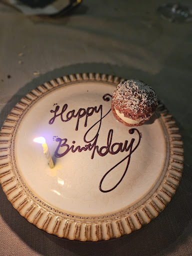 When I asked the waiter about birthday offerings, he said you “just write happy birthday on the plate” and that cakes must be pre-ordered—an answer that surprised me.