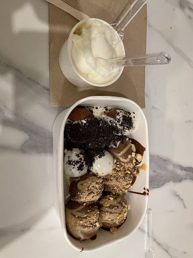 The highlight for me was the loukoumades. Made fresh to order, the dough is crispy on the outside and soft and chewy on the inside. Both the baklavades topped with honey, pistachio paste and crushed pistachios and blueberry featuring loukoumades filled with vanilla cheesecake and topped with blue berry jam were delicious. I also highly recommend ordering some ice cream to go with the loukoumades. The Turkish ice cream was firmer in texture than regular ice cream but just as tasty and it beautifully complimented the loukoumades.