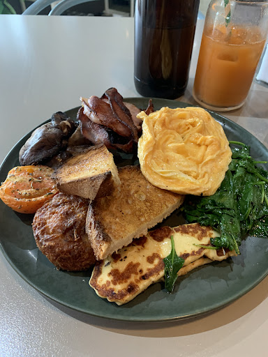 Ordered a fresh juice and a big breakfast . Noticed just one young lady behind the bar calmly and efficiently doling out all the beverages - props to you :) my juice was delicious, just the right amount of ginger too. Food was so lovely , good portions, good flavours/ properly seasoned .