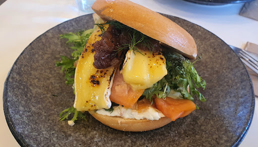 This was my first visit to this cafe for a catchup with a family member who chose it and also never been. The place on weekends always seemed to be busy on passing, and maybe due to the festive season today was exceptionally busy. Most seating inside and out were full for mid morning breakfast. I had to wait to be asked whether I was coming in to eat as several ppl were already lined up to pay. The staff member could have been a bit more attentive to her situation and acknowledged me and let me know she would get to me after the others. Anyway fortunately I was early for our booking, so not concerned. Staff member came reasonably promptly to take our order which we started with coffees. That did take a bit of time, but the Barista was pumping them out as quickly as he could. Definitely don't come here if your in a hurry if sitting in. It's obviously a very popular place for locals who come to chill. There's a nice separate areas with some comfy chairs to the back. The atmosphere and overall place looked great, but as with all these modern interiors. If you want a chat with friends I'd try getting one of the separate nooks or eat outside, but Melbourne is so fickle. It was windy today, so not ideal to be outside for us. As no soft furnishings on any surface, once it's busy it gets noisy. Bearable. I will start with the good. I ordered a Magic and it was very good. Strong and just right in temperature. The other coffee was a soy latte. That could have been a bit stronger in my relatives opinion. So good so far. We ordered a salmon bagel, and the mushroom dish with Potato Rosti. The meals took awhile to come. I won't say how long, as wasn't watching the time. They were busy,so can take that into account. Again don't come here if you're in a hurry on a weekend. My bagel was very vell presented slightly open lid style with a good amount of fillings. I was happy with my choice as it was hard to choose as the menu had alot of choices. Now with the bad - the Mushroom dish. This is where we were not satisfied with the dish, and maybe due to us not having the Potato Rosti before. But it came out burnt. It should never of been served out to us as it just ruined the experience. As soon as my relative tasted it, it was definitely wrong. We then asked a waitress if this was served correctly and she said that's how it is. Well. that was clearly not the case. We probably should of asked for it to be brought back to the kitchen to confirm. Please see other posted pic of the same by some other reviewers. Ours was litterally black. But as she had already eaten some, the burned taste was already in her mouth, so just ruined the rest of the dish. We had to say something again, but we asked another waitress. This time she immediately considered what we were saying, and tried to fix the situation. Which I can say she did her best, so appreciate her actions. By now my relative didn't really want the same thing, as we didn't want to wait again, but she did want to eat something substantial as mushrooms and poached eggs wasn't enough. In the end we had some toast and butter. Two things. Someone in the kitchen should of checked what goes out and the waiting staff should be trained or more aware of the dishes presented to know what is not right. I know things happen, but just looking at it someone should of picked it up. Also all staff looked well under 25 and maybe not experienced. Ok. At checkout we were given a discount. As you would expect given that dish which we didn't have to ask for. Can I say that given the pricing of the dishes the meals should come out on point. The coffee was priced reasonably. Magic $5 Ok with that. Would we go back there. Probably not for us....