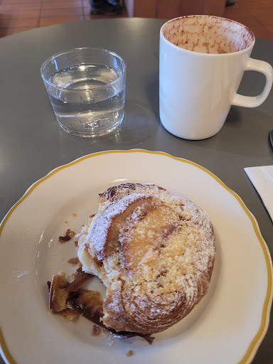 I came in this afternoon for a simple "coffee" (hot chocolate) and sweet before an interview. I can say with absolute certainty that this is the most pretentious, arrogant, uppity, coffee snob cafe I have ever visited. There was an air of superiority and unwelcomeness that immediately made me feel like I wasn't worth their time. I was somewhat prepared for the drink to be expensive. However, for a one-size 10 ounce cup, I was shocked to be paying $7.50! The total with my peach danish came to $17! Things went from not great to worse when I attempted to taste the danish. It was SO stale, I could barely get my teeth in for a good sized bite. I had two more attempted nibbles, thinking it might be softer closer to the center, it was not. In addition to that, the water tasted like vodka??? It wasn't sparkling, it wasn't still, it wasn't even lemon water. I was happy to try and replace the danish for something else of the same value before asking for a refund - as I know servers are generally reluctant to process refunds - but the replacement plum danish was just as stale! I could not even cut through it with my knife. I received the refund for my food and left. The only okay aspect of my visit was my drink, and I'd give it a 4/10. Just...