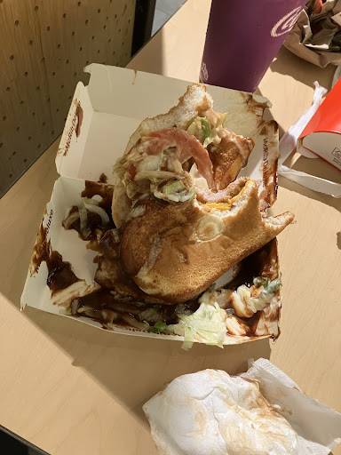 Read moreOrdered on SS machine. No line, very few people waiting for order. While waiting for orders you can see right down the back and watch what the staff are doing. While I waited all the young staff stood around talking to eachother not paying attention to what the order says and one girl stood with our order waiting for another order to come through so she could open a bag. She did not move from her spot once. The manager came out, ignored all the staff that stood around talking, packed our chips into the bag and handed it over to us did everyone else’s job for them. The chips had been sitting under the heater since before I ordered and the bag of food sat out of the heater for a good few minutes waiting for rest of order in which the girl waiting for another order to come through could have easily done with some initiative. I had to return to the store twice because they messed up the order twice due to standing around...