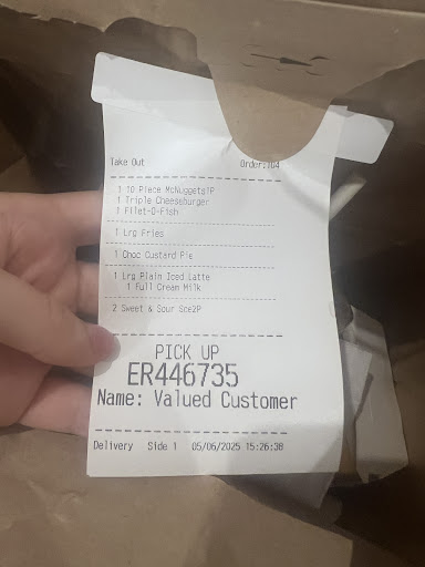 Read moreI waited the longest I have ever waited at this drive through today, I ordered a toasted banana bread, a small orange juice and 6 nuggets. I waited for 15 minutes in the queue (they didn't get anyone to sit in a waiting bay so they may not have one) and when they finally gave me the order I realised too late the banana bread had not been heated or toasted at all and the OJ was watered down and was some sugary half juice in their cup not a real juice in a bottle which if they had told me I would not have ordered. The order was 13$ which seems expensive for that. They are also still using plastic straws and even when I ask for no straw or to use my reusable cup they forget. That is not unique to this McDonalds though, that happens at all of them. As such an influential company McDonalds has an obligation to do better, be more sustainable, to introduce a meat free option etc - they are not very socially responsible, everyone knows that but at the very least they are meant to be efficient, have great service and consistent quality with their food. This store has none of...