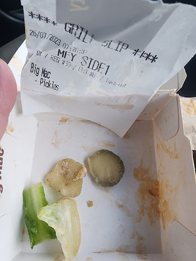Ordered a Big Mac from here with "NO PICKLES", had to wait which I was fine with as it was in the morning after finishing work (got the burger and wasnt even hot). It was not until I started eating that I noticed there was no cheese and that they had put pickles on it. When I called Carrum Downs McDonald's the man proceeded to tell me that "the kitchen made no mistake and that it was made correctly", and said I needed to take a picture to get any sort of reimbursement or replacement, I stated I did not want a reimbursement or replacement but just to let them know about the item not being correct and again he started saying that the kitchen made no mistake but this time with a firmer voice, I told him not to worry about it and he hung up. Pretty annoying when spending over $7.00 for something to eat and being told it was made correctly when clearly it wasn't, picture shows the pickles and the "lettuce" with stalks the...