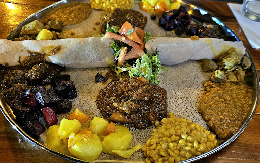 Read moreThe interior is friendly and welcoming. There a many little details focused on the ethopian culture. There were many traditional dishes to choose from but this was our first time trying anything from the african continent so we decided to try the plate that gives us a chefs selection.