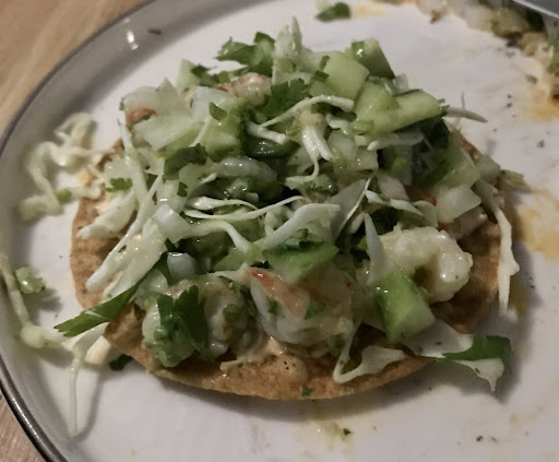 We were a party of seven and were very happy with our dishes tonight. We started with the Tlayuda which was fresh and delicious. The only problem I had with this dish was having to share it. It’s a beauty. We all had different tacos and tostadas. Variously tried by our party were the caramones (with prawn), carnitas (with slow cooked pork) and verduras (with beans and zucchini flowers). We then shared tacos. We tried the beef and the pork tacos respectively. Both were excellent.
