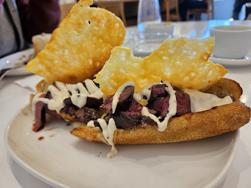 This place is a gem. The coffee is some of the best in Melbourne (and we love coffee). My wife had the steak pie, which had clearly been baked on site. I had the triple cheese steak baguette, and as others have mentioned, it is unbelievably good: the melty cheeses, the fresh baguette, the delicately sautéed steak, the tangy Parmesan crisp. I got mine with a salsa verde, and it all melted in my heart. We also shared a cinnamon scroll, and I think they used fresh cinnamon in it.