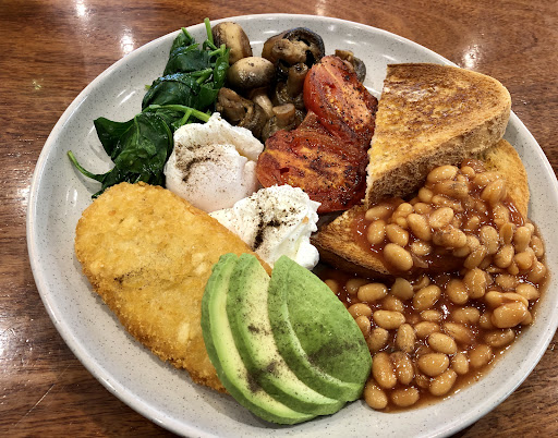 I fancied the veggie breakfast which turned out to be large, generous and tasty. Iām not sure how much was made on site - the beans and the hash brown, for example - looked and tasted like bought ones. There were some inconsistencies too. One of the poached eggs was cooked and beautifully runny. The other had a decidedly firm yolk. Iām pretty easy to please though and enjoyed the dish. It was a good size and it was nicely presented and delicious in its own way.