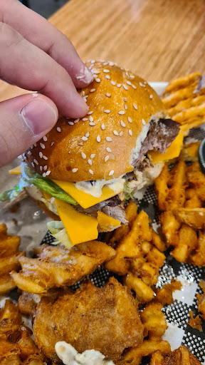 The food? Only had the one dish, the burger with fries. It was priced at nearly 30 dollars but absolutely not worth that. A porterhouse steak burger which tasted like it had been microwaved, small cut of meat on a even smaller bun. And when I say small bun believe me, it's small. The fries were ok, but a but too greasy and minimally...