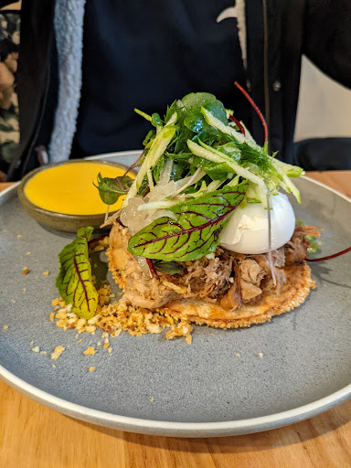 This place has such a great vibe. It was tucked to the side of a shopping strip amidst a spot of green, with outdoor seating and a great indoor setup. The comfort of forest green walls, high ceilings, and modern but casual furniture compelled us to stay and catch up for more than an hour. Their staff was professional, friendly, and attentive, checking in at the right moments to see if we needed anything without being overbearing. The menu seemed new, too, with a few changes to some of the favourites and with enough variety to entice us across breakfast and brunch dishes. We had the Eggs Benny, this time with pulled pork and although they'd run out of Marty's Crumpets, the bagel it came with didn't take away from its deliciousness. We had the hollandaise on the side, which we'll definitely come back for, and the apple salad was a refreshing splash of acidity and sweetness. We also had Eggs My Way and though this is as simple as it gets, the sourdough was definitely better than most other places. Their coffee is supplied by St Ali, their tea by Tea Drop, and handled with great care by their baristas. Their skinny cappuccino, filter coffee, and lemongrass and ginger tea were definitely a step above the rest in that regard.
