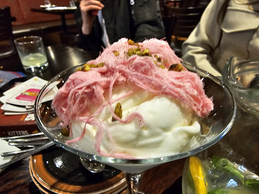 We ordered food around 7:30-7:45pm. We ordered 5 appetisers (raw lamb, hummus with meat, cauliflower, an eggplant dish and a rice dish) and 1 main (mixed grill) between the 3 of us. 4 of the appetisers came around 8:15pm. At around 8:30pm, we asked if someone could check on when we could expect our main and our last appetiser (cauliflower) to arrive. We waited a little over 5 minutes and received no update (and noticed the waiter attending to others instead) so we asked another waiter to check. Again, we waited and received no update. We asked one last waiter and (surprise) received no updates. We were noticing that similar items were arriving at other tables who came after us but not ours. Our main arrived around 8:45pm, at minimum an hour after we had ordered. It was incredibly small for what we paid and not at all unique in any way for it to have taken that long. Our cauliflower never arrived and at this point, we were tired of having to chase down waiters in a somewhat small and busy restaurant. We asked a waiter to cancel the cauliflower and have it taken off our bill. We ordered and ate dessert (Kanefeh and an ice cream dish). They both arrived quickly. The Kanfeh was good but super sweet.