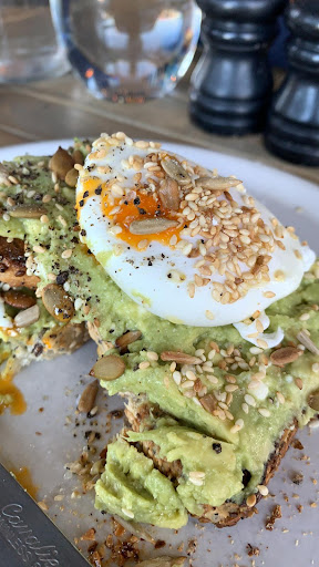 Read moreI loved having breakfast at this beautiful ambianced with modern decor, plants and soft-rock music, and and well stocked with fresh fruit and vegetables, cafe style venue! I arrived and just wanted a brewed morning tea and ended up having their "The Smart Way," without poached eggs and nuts. They accomodated me so well and the multigrain toast with smashed avocado was served devinely and tasted great! I will certainly come back and next time try their almond coffee range and other coffees with their lunch plate "Vegan Bowl," and "Chef's Gnocchi! A...